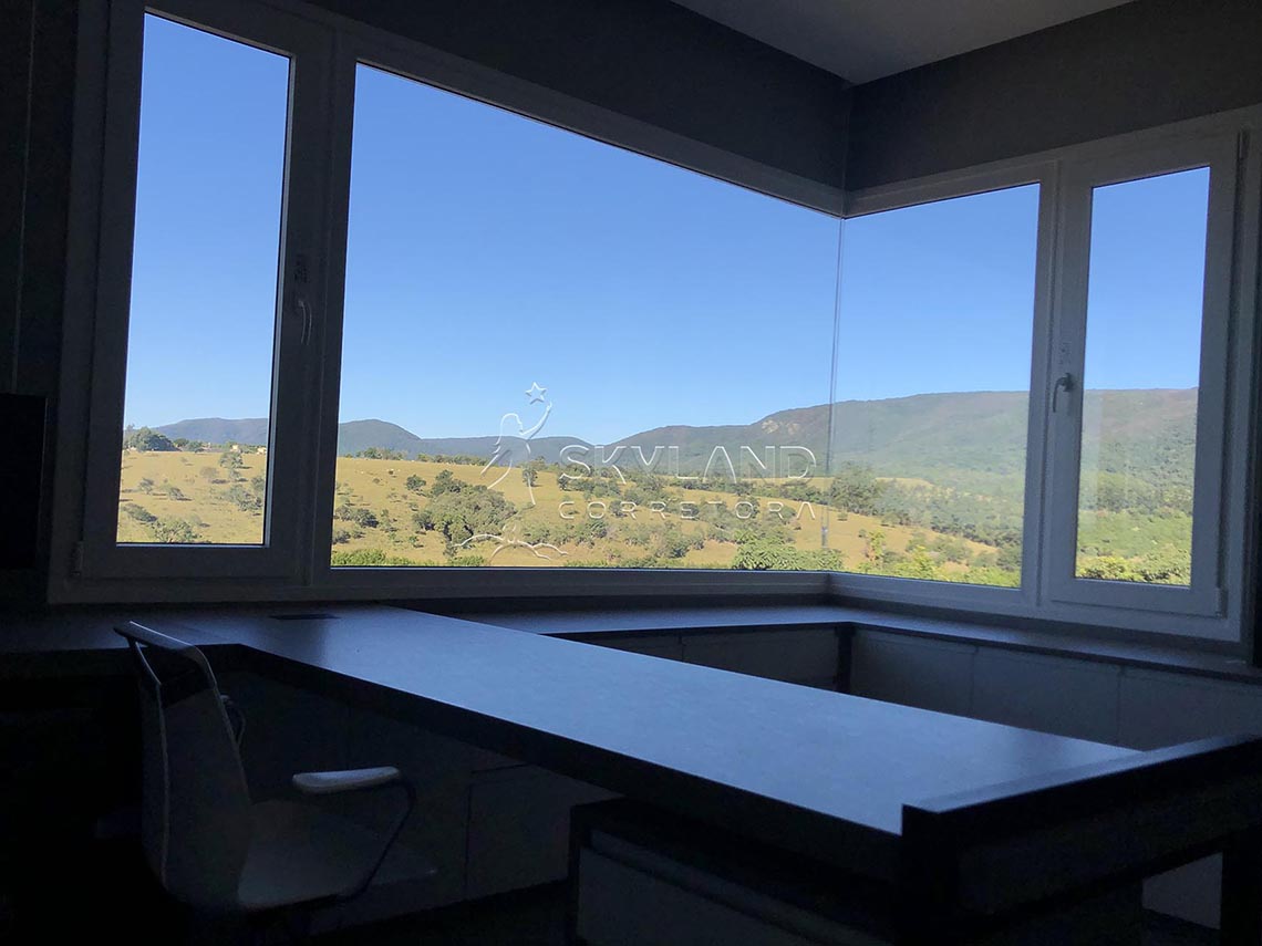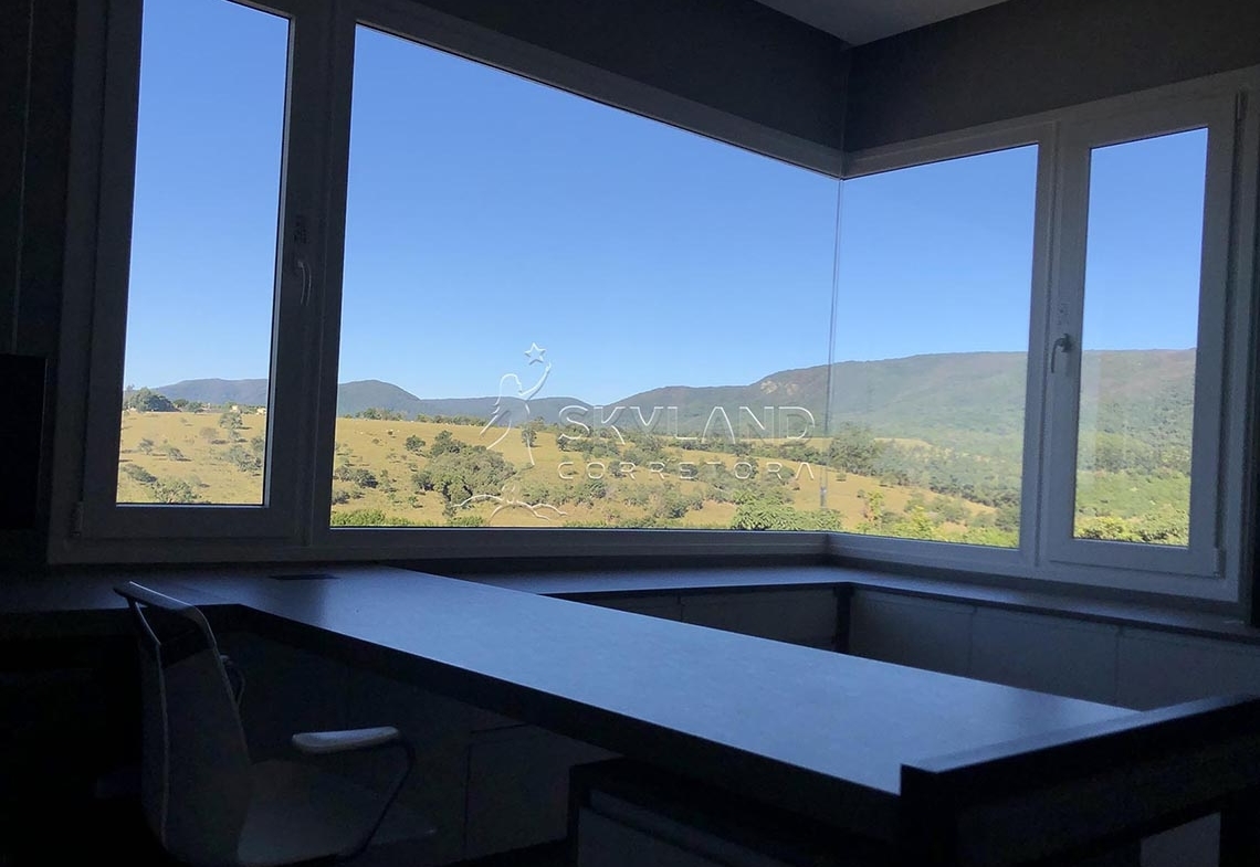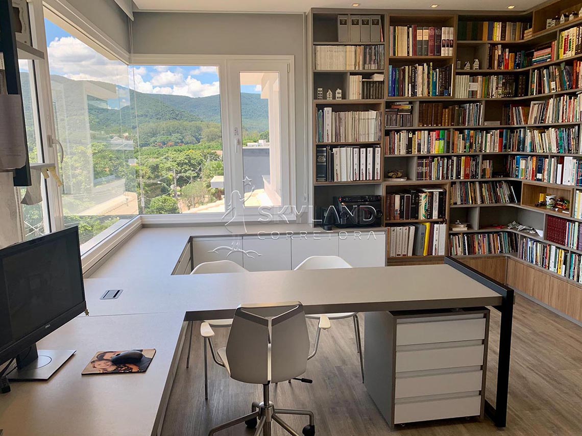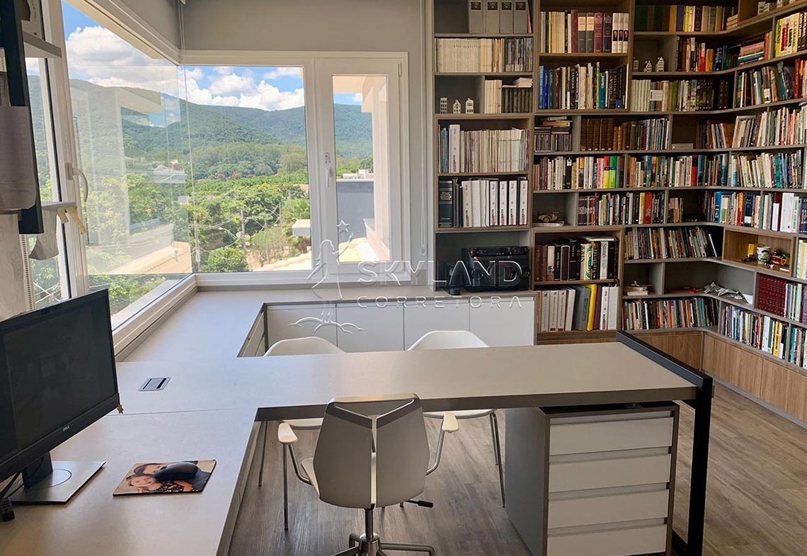 ✅ Amplo escritório com biblioteca e vista para a Serra do Japi.