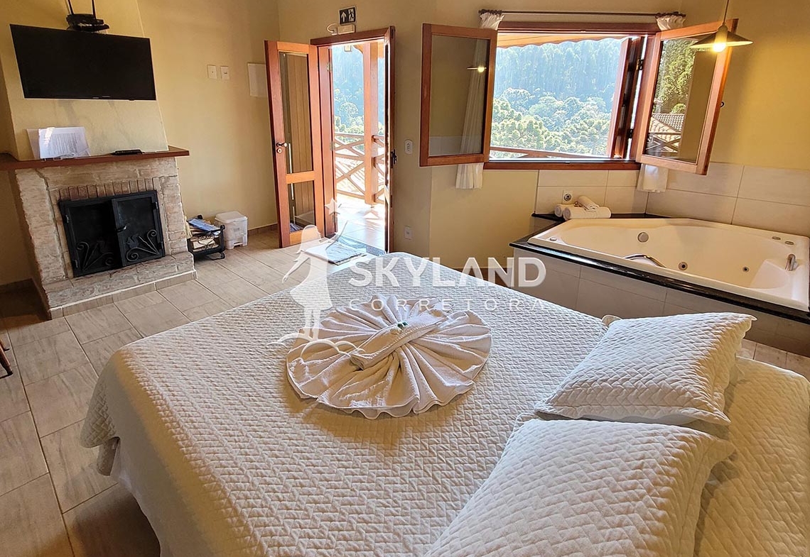 ✨ A Pousada possui 10 suítes com lareira e hidromassagem com cromoterapia, acomodações confortáveis, um lindo jardim, além de sua localização privilegiada há somente 5 minutos do centro gastronômico e comercial de Monte Verde! Sua infraestrutura conta com poço semiartesiano, internet, TV a cabo, lavanderia, entre outros diferenciais!